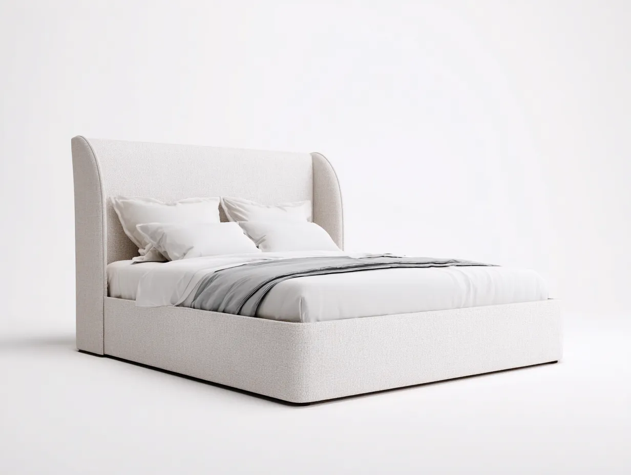 Doppelbett Polsterbett aus Stoff 200 x 180 x132 cm - cremeweiß - für das Schlafzimmer - mit hohem Flügelkopfteil
