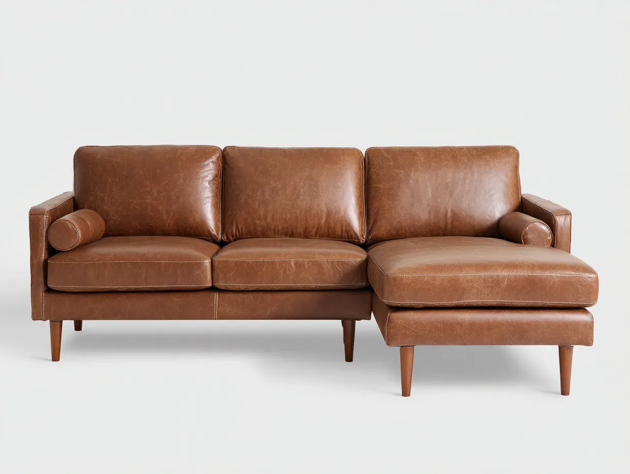 Ecksofa Kunstleder 240 x 158 x 84 cm braun für Wohnzimmer - modern mit Chaiselongue und Holzfüßen