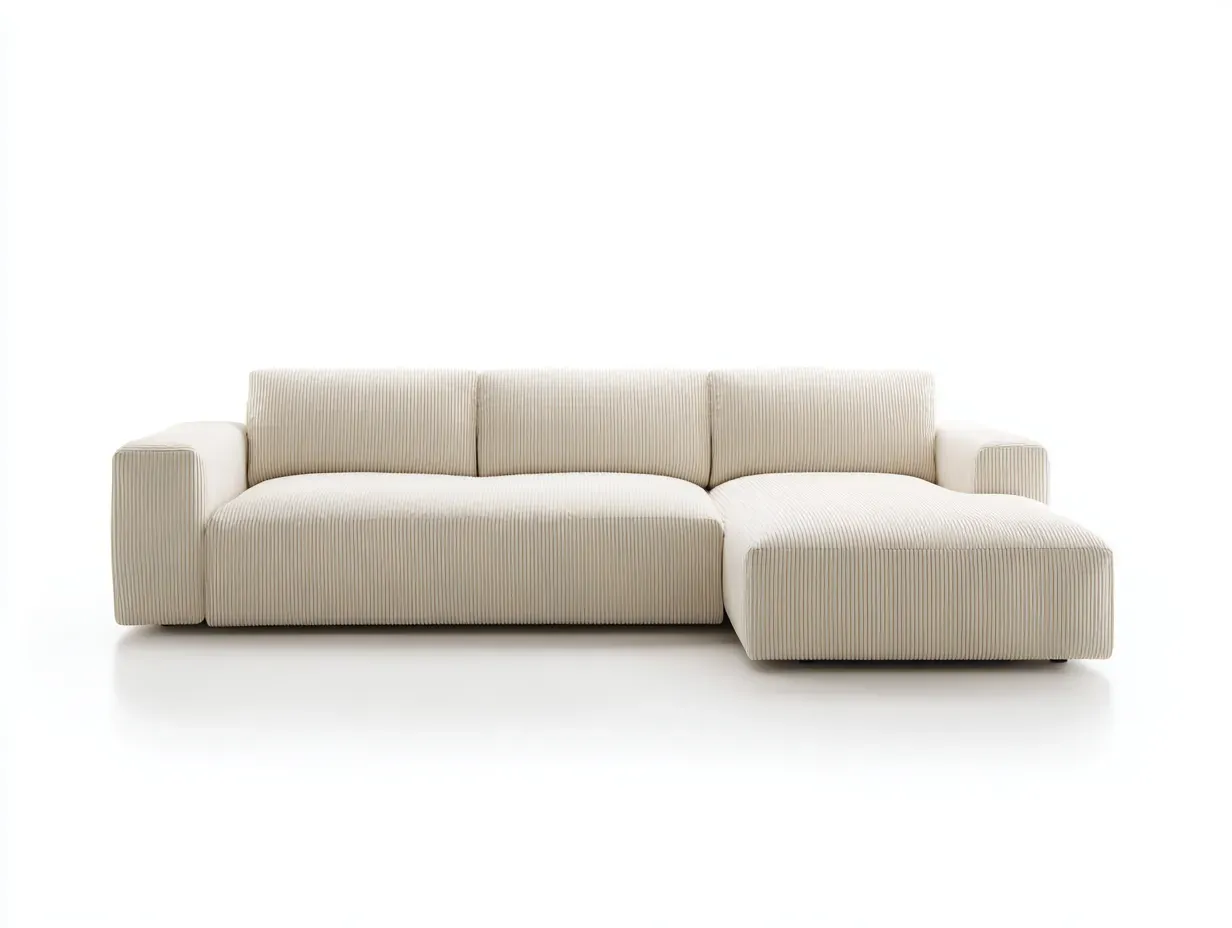 Ecksofa Stoff 260 x 160 x 82 cm - cremeweiß - für Wohnzimmer - modern mit Chaiselongue und vertikaler Struktur